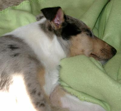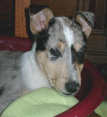 Mein Fell ist kurz. Das ist bemerkenswert, weil ich ein Collie bin. Die Farbe heißt bluemerle, wobei ich gar nicht wirklich blau sehen kann. Versteht Ihr das?