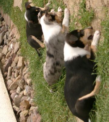 Ich mußte heute erstmal den Garten erkunden und die verschiedenen Spielzeuge auf Tauglichkeit prüfen. Die Mithunde sind auch ein paar Nasen ;-)